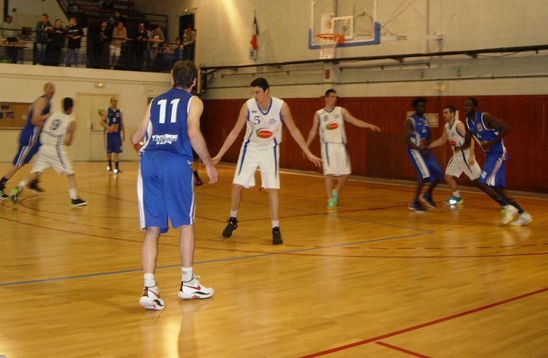 condamné à la relégation en ERM, faisait bonne figure. Score : 23-25, 45-39, 61-65, 81-92 Loïc Doucende (15 pts), Guillaume Rios (9), Rodrigue Monge (13), Laurent Pellegrin (20), Laurent Bravetti (9), Thibault Leclerc-Lamponi (11), Eric Longin, Jose Goncalves (4) |